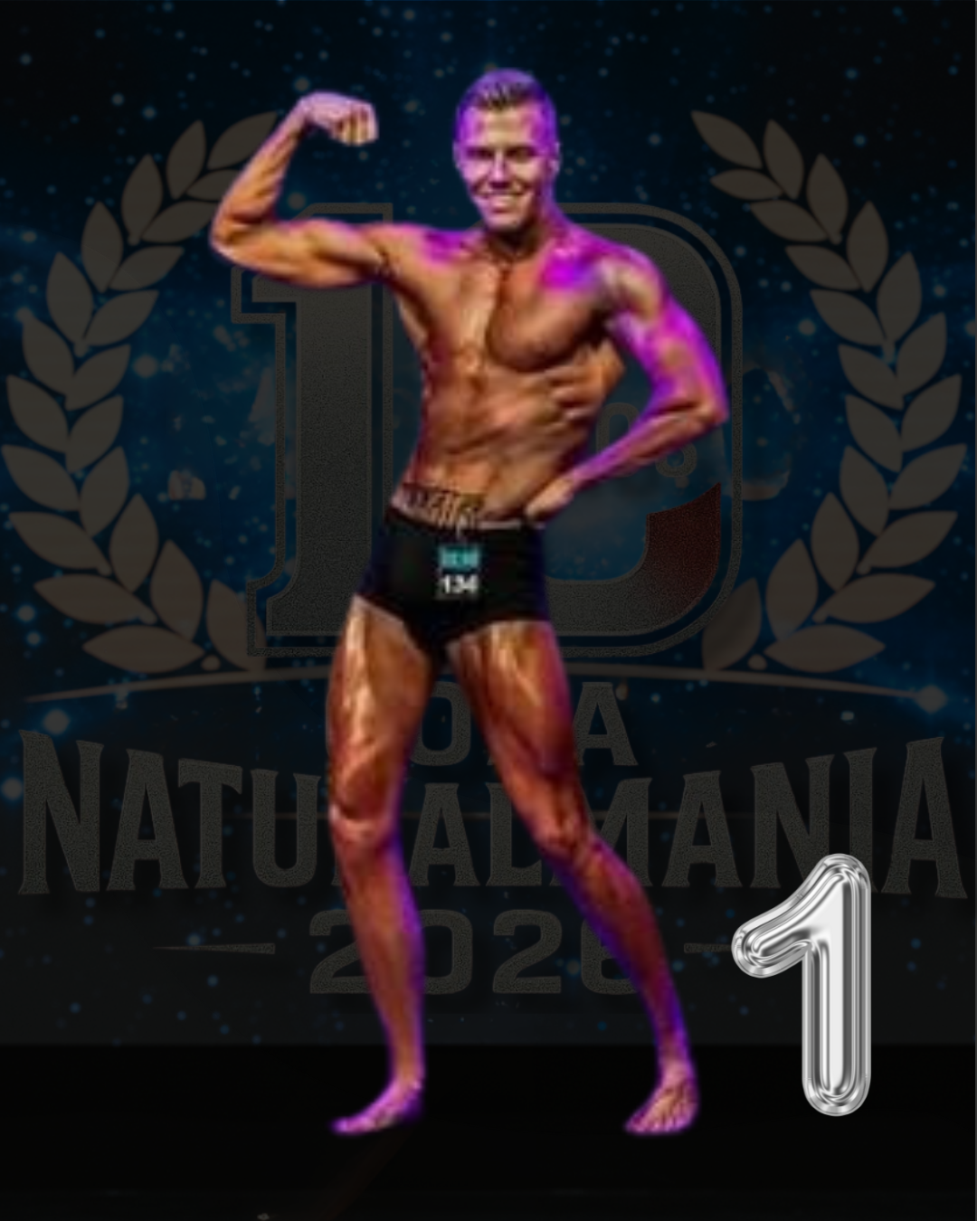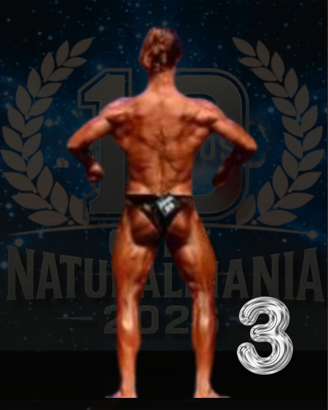 Pecho alto, ligero giro de hombros hacia el juez para seguir mostrando V-taper.